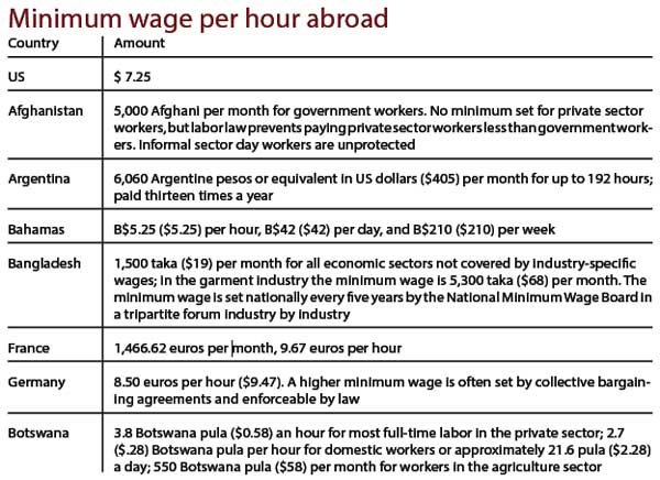 Economist Pierre Dinan trusts that it is crucial for the minimum wage to equal optimum work. “We must question if the work has been accomplished in the most competent manner and that if the quality of the work done is in the best conditions. If these conditions are applied, and if you are doing your best work, then we can say that the minimum wage is deserved. This is a basic principle. It is not the minimum wage in itself which is a problem, it is whether employees will do something in return,” he states. Regarding the effect of minimum wage on unemployment, Pierre Dinan explains that if a company must pay a minimum wage to its employees but it is not getting a satisfactory work in return, then the organisation will have additional costs. “Thus, the enterprise may find itself in difficulty. However, I am not speaking of the big companies. I am speaking about the small enterprises which make small profits and which are already sufferring. We can thus face unemployment as the risks are in those small enterprises.” He further points out that maids and caretakers of senior citizens who are usually not well paid can benefit from the minimum wage. “However, this may also cause unemployment as it will be difficult for senior citizens for example to pay the caretakers/maids more. Thus, this category of employees might suffer from unemployment.” Pierre Dinan trusts that the minimum wage will improve the purchasing power of those who will benefit from it. “Those who are earning less than the yet to be decided minimum wage will have an increasingly purchasing power.” However, on a question whether the minimum wage will have an impact on inflation, Pierre Dinan utters that he is not of that opinion. Regarding the poverty line, the economist believes that the real poor are those who are unemployed and those who do occasional jobs. “There are single-parent families and teenage mums who are the sole bread earners in their families, families with many children. These people are the most vulnerable ones. So, I doubt that these people will benefit from the minimum wage. The government must increase the benefits of those people instead of giving universal pensions to those who do not deserve it,” he argues. [[{"type":"media","view_mode":"media_large","fid":"16528","attributes":{"class":"media-image aligncenter size-full wp-image-27924","typeof":"foaf:Image","style":"","width":"640","height":"431","alt":"Minimum-wage-european-countries"}}]] [[{"type":"media","view_mode":"media_large","fid":"16529","attributes":{"class":"media-image aligncenter size-full wp-image-27925","typeof":"foaf:Image","style":"","width":"600","height":"436","alt":"Minimum-wages-per-hour-abroad"}}]]Testimonies
