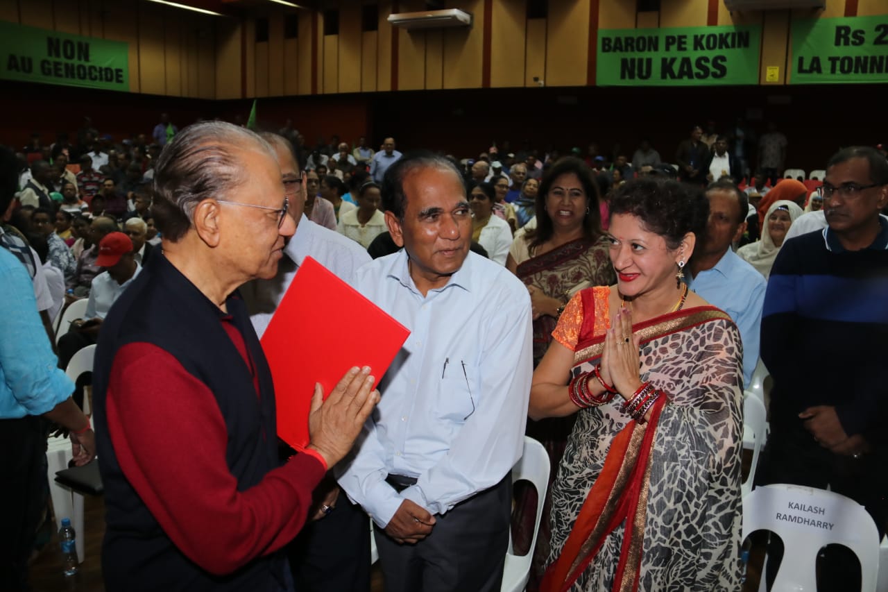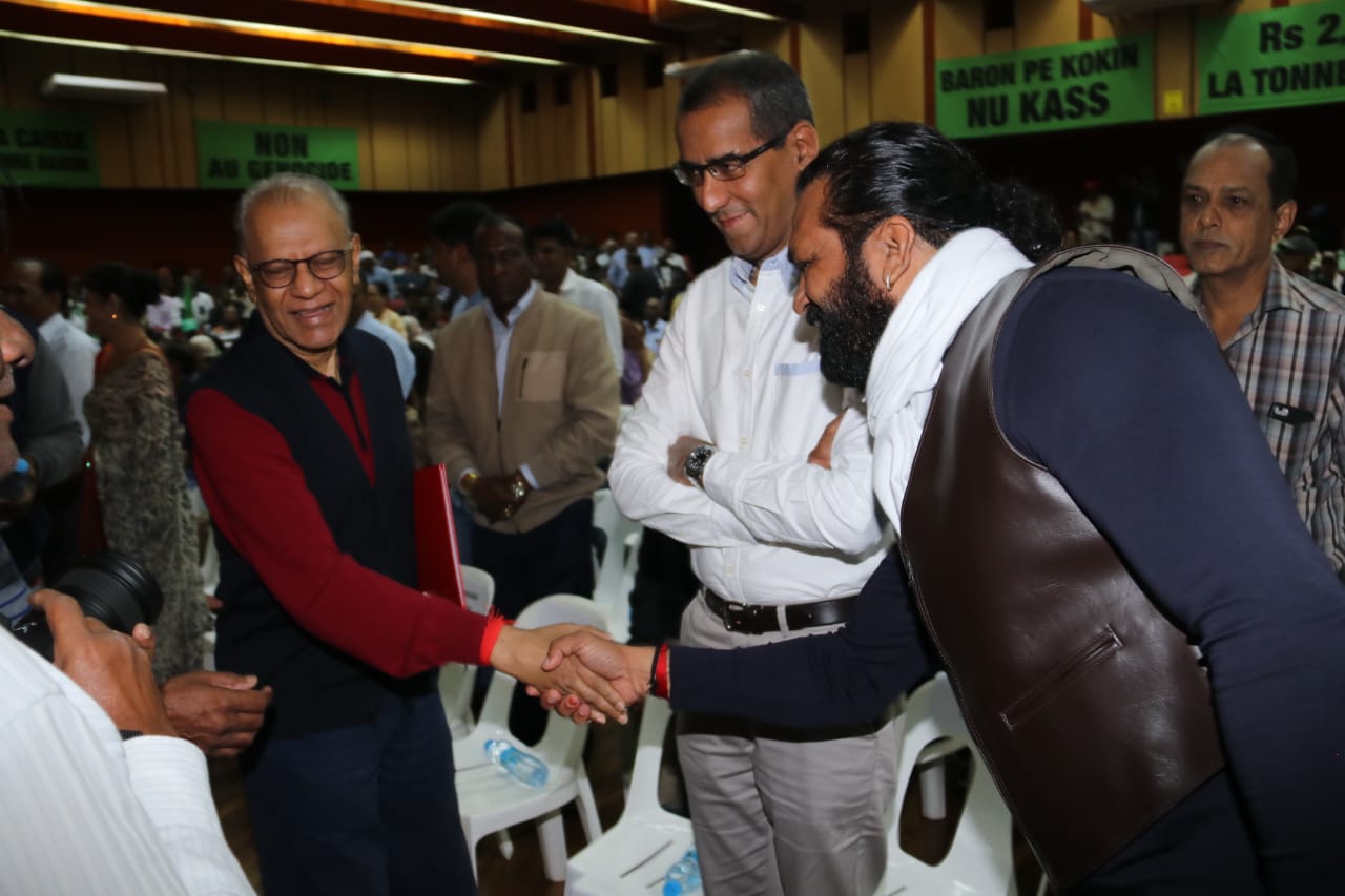 Le leader du PTr, Navin Ramgoolam, est lui aussi présent à ce rassemblement. Cette poignée de main entre le leader des rouges et celui des mauves n'est pas passée inaperçue à l'auditorium Octave Wiehe.