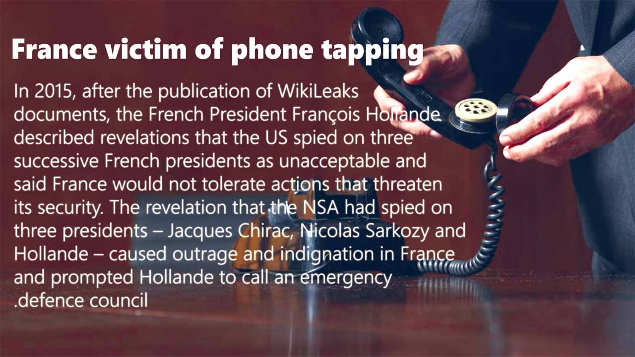 Director of Whitefield Business School Subheer Ramnoruth explains that a wired telephone network connecting two people is like an electric circuit forming a loop where voices travel between two phones in the form of fluctuating electrical currents. “It was fairly easy to bug traditional phones simply by introducing an extra load within the circuit in the form an additional phone through which the tapper could listen to the conversation,” he says. According to him, recently, a technical bug was discovered, which enables phones to be tapped even without even informing the service provider. “Every handset has to authenticate itself to the network, while the network doesn’t have to get itself authenticated by the handset. This glitch enables a man in the middle to attack, where the interceptor poses as the network or base station, to decrypt the encoding and then to release the signal to the original network. The interceptor connects to the original network by using authentic sim cards. A possible defence can be end-to-end encryption, but the present technology is very expensive and will also need handsets to be compatible with each other,” he reveals. [[{"type":"media","view_mode":"media_large","fid":"15514","attributes":{"class":"media-image aligncenter wp-image-26079","typeof":"foaf:Image","style":"","width":"721","height":"406","alt":"France-phone-tapping"}}]] IT Director Rajiv Seeras, confides that different technologies are used for phone tapping and the technology differs for landline and mobile. “Passive interceptions, as opposed to active interception, are ways to intercept mobile phone conversations without the caller or the phone operator noticing. Technologies consist of physical hardware equipment that can be used to intercept calls within a radius of a few kilometres.” On the other hand, active interception makes use of a rogue base station with strong signals to force the mobile phone to connect to while disconnecting with legitimate base station. In several jurisdictions, the law makes provisions in specific cases where phones can be tapped, more precisely when there is the risk of imminent harm. Phone tapping equipment is generally costly and are not available off the shelf, he explains.NSA tapped Angela Merkel