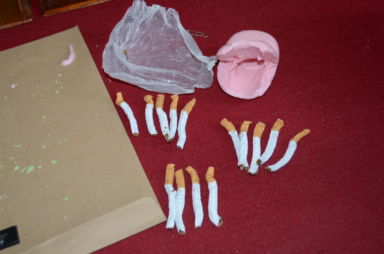 L'une contenait... un téléphone portable ainsi qu'un câble. Alors que 14 cigarettes enveloppées dans du plastique étaient dissimulées dans l'autre.