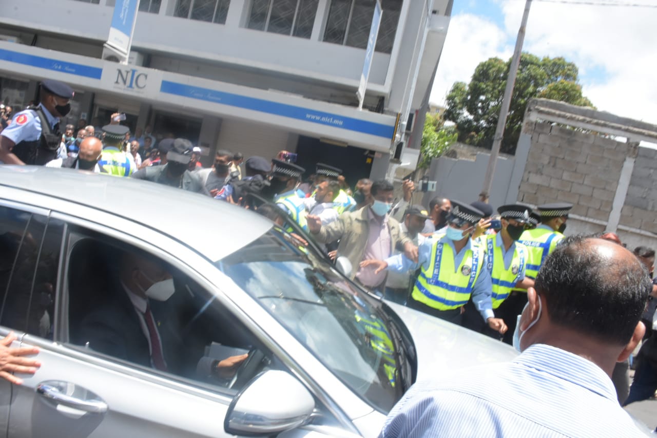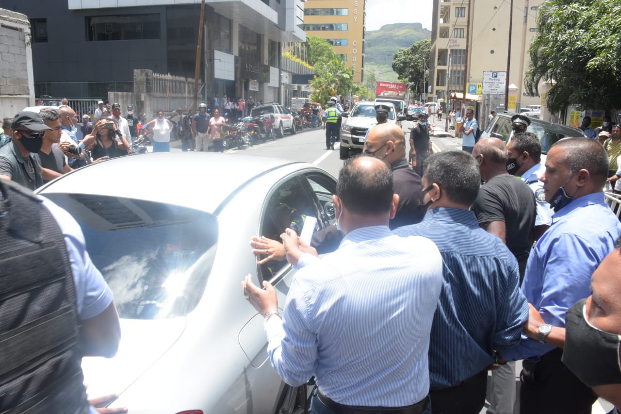 Hué par une foule hostile, Yogida Sawmynaden a dû quitter les lieux sous forte escorte policière. Sa voiture l’attendait déjà devant la New Court House.