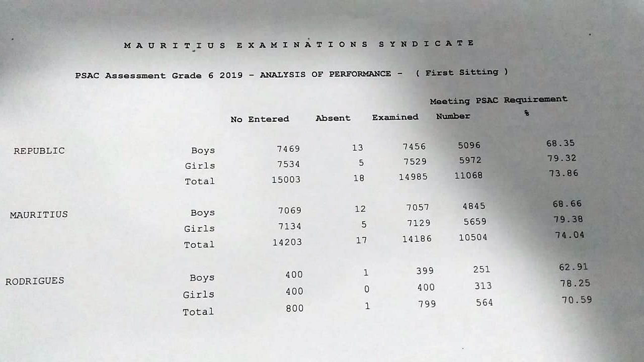 Le taux de réussite à Rodrigues est 70, 59 %. 800 candidats (400 garçons et 400 filles) ont pris part à ces examens dans l'île.