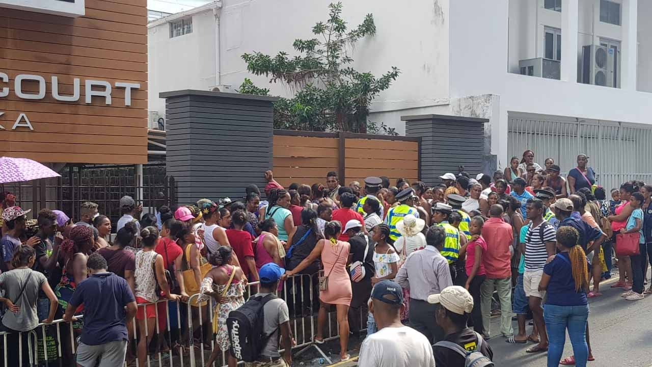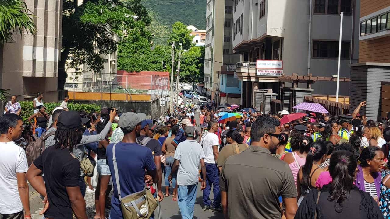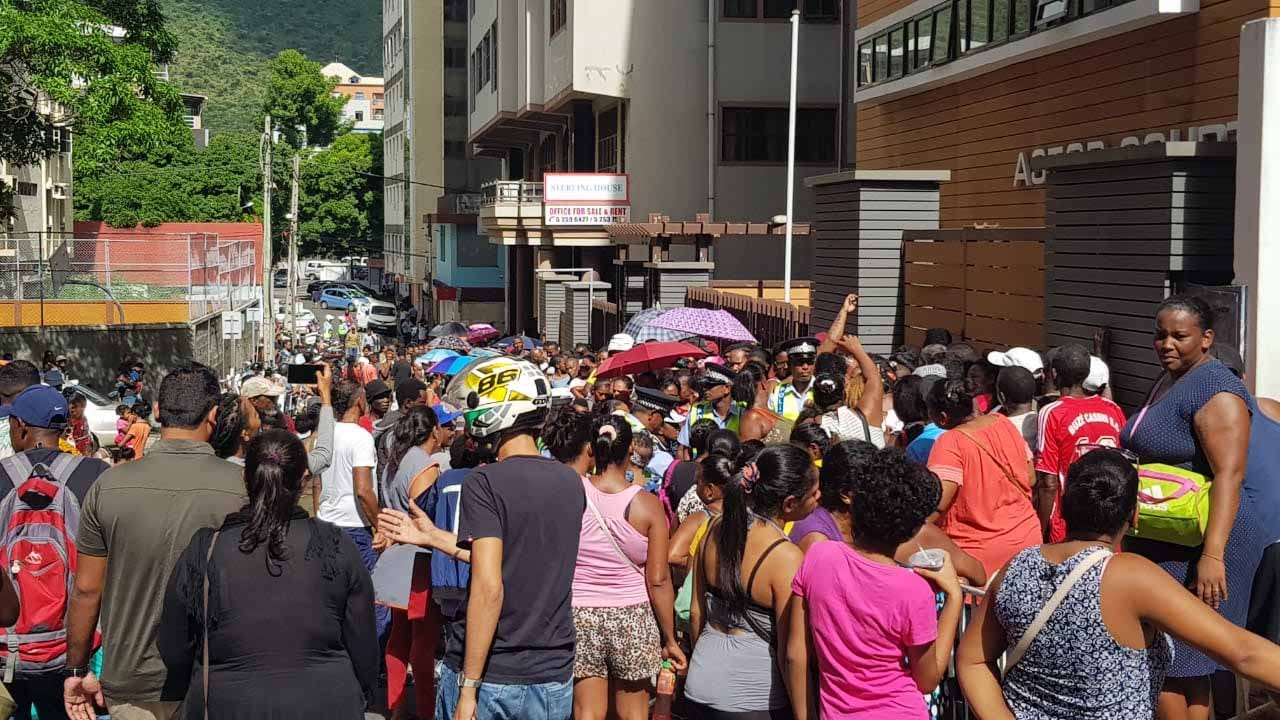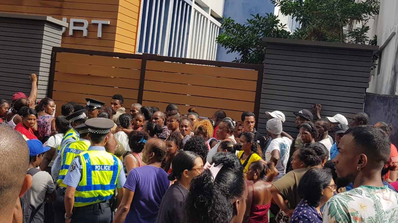 Ce bâtiment abrite les locaux de la Sécurité sociale. Les sinistrés, dont des habitants de Roche-Bois, Sainte-Croix et des régions avoisinantes, réclament des allocations de l'Etat auxquelles ils disent avoir droit après qu'ils ont tout perdu lors des intempéries ayant frappé le pays il y a deux semaines.