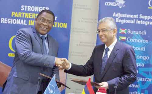 [[{"type":"media","view_mode":"media_large","fid":"19742","attributes":{"class":"media-image size-full wp-image-34090 alignleft","typeof":"foaf:Image","style":"","width":"500","height":"312","alt":"pravind"}}]]Mauritius obtains Rs 27 million grant under COMESA Adjustment Facility
