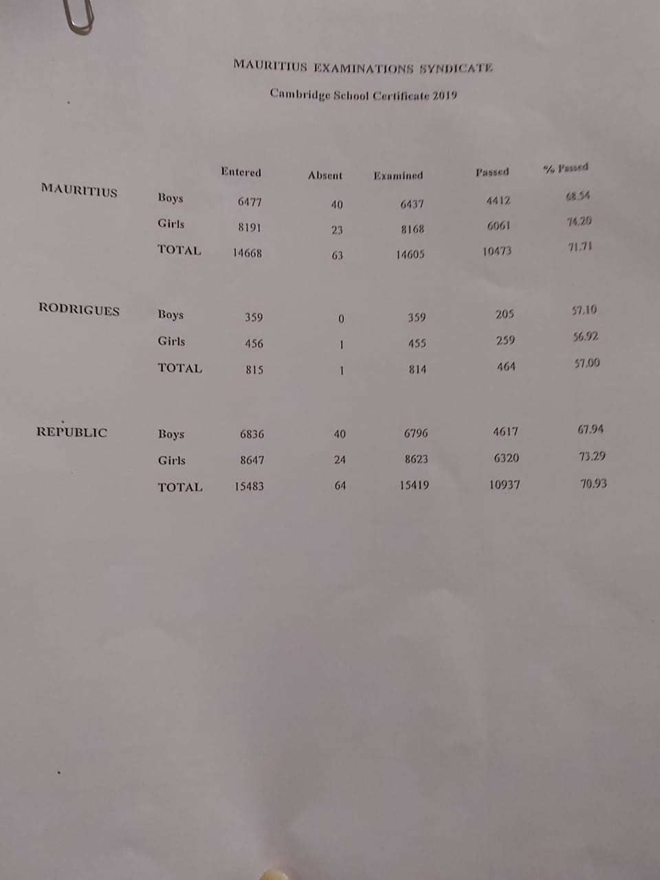 Ces chiffres ont été communiqués par le Mauritius Examination Syndicate (MES) ce jeudi soir.