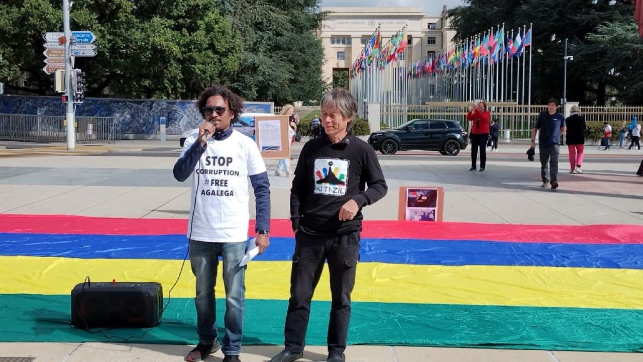 Un groupe de manifestants, dont une majorité de Mauriciens, a protesté devant le siège de l’Organisation des Nations Unies (ONU) à Genève en Suisse ce samedi 17 septembre 2022. Ils protestent contre l’accord entre l’Inde et Maurice concernant Agalega. Parmi les manifestants : Jean Wolf, Padma Utchanah, Arnaud Poulay, Percy Yip Tong et Mario Pointu.
