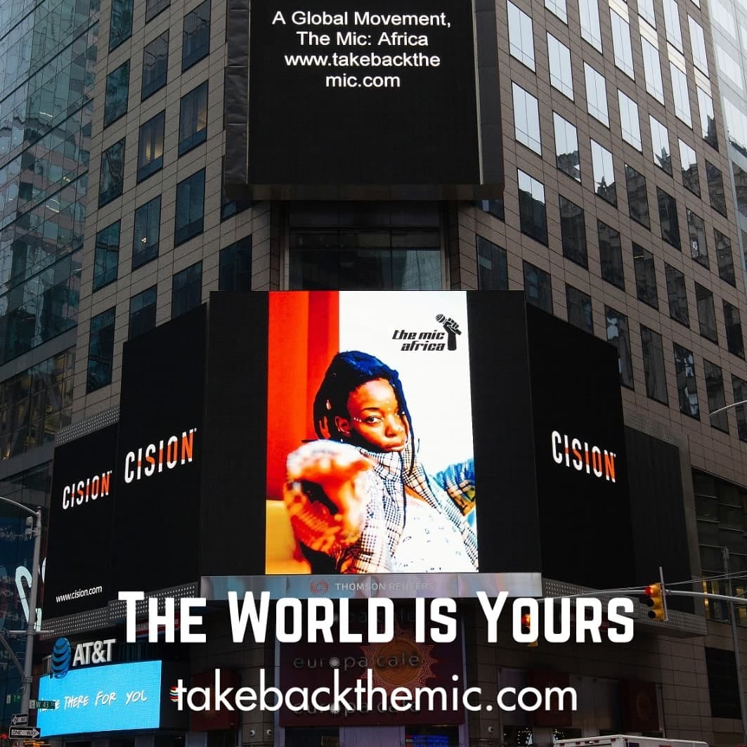 The Mic: Africa sur un billboard au Times Square à New York, aux États-Unis
