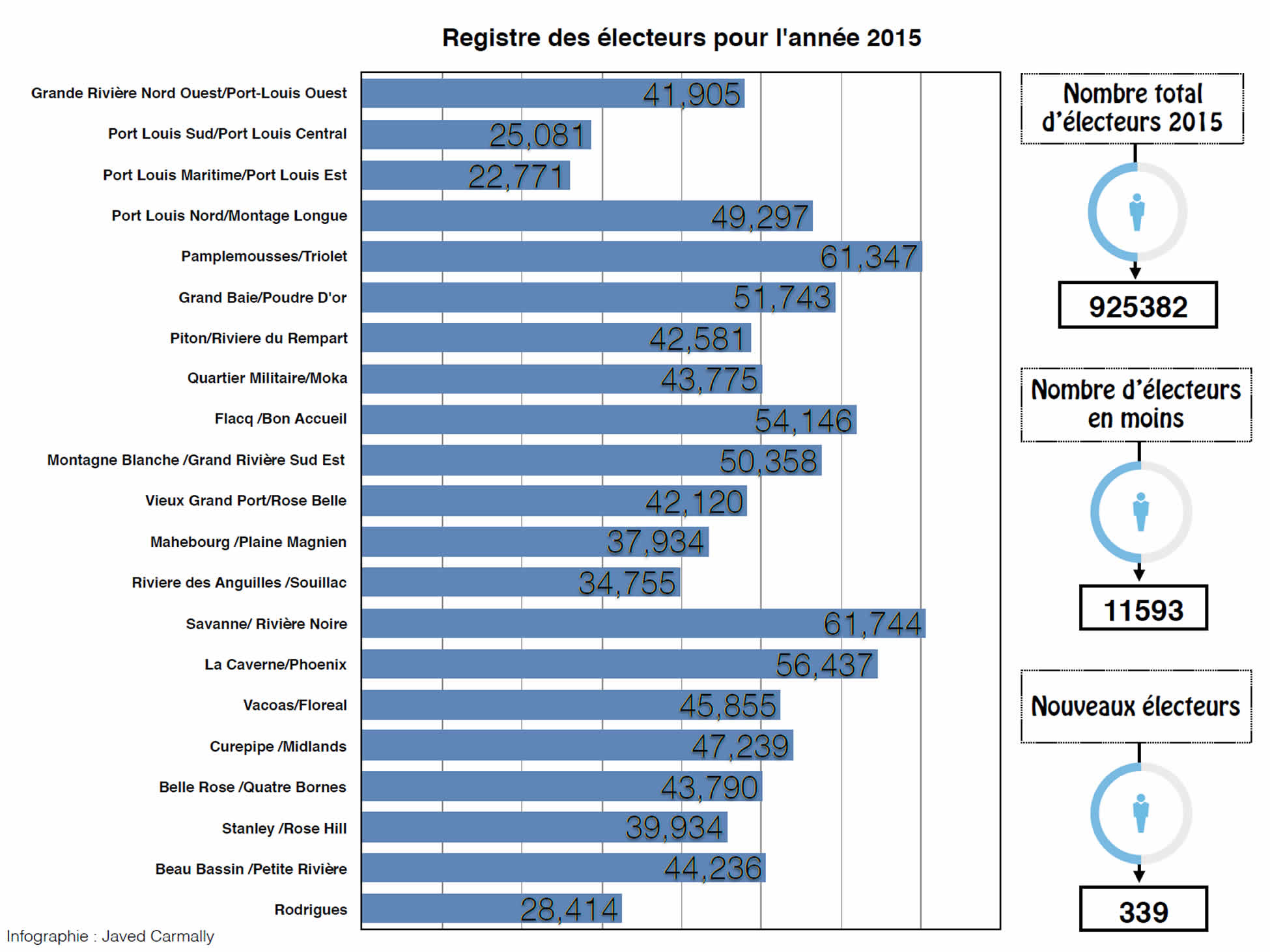 La République de Maurice compte à ce jour 925 382 électeurs contre 936 975 inscrits au précédent registre électoral. Dans le même temps, on ne compte que 339 nouveaux électeurs.