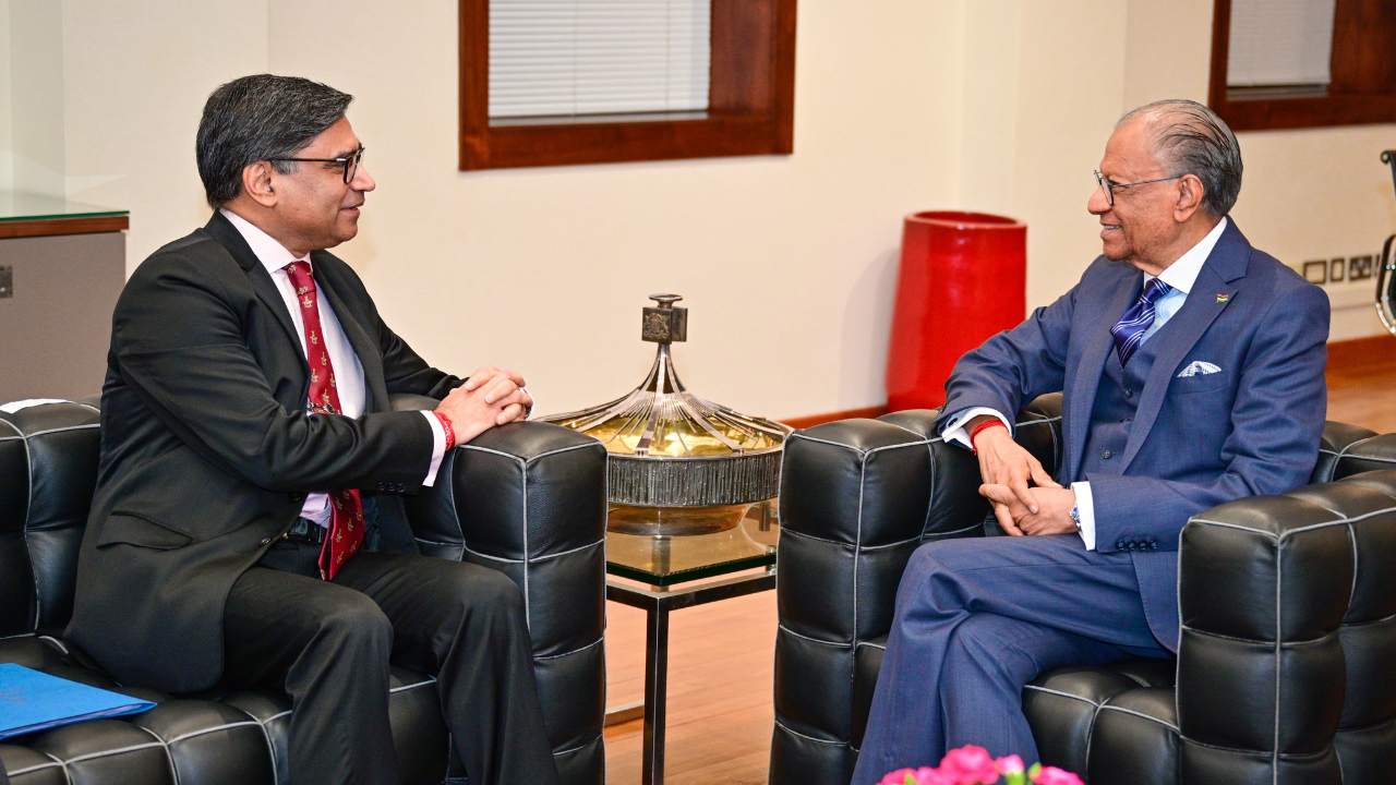 Le Premier ministre, le Dr Navin Ramgoolam, a reçu dans l'après-midi de ce mardi 1er juillet 2025 le Secrétaire aux Affaires étrangères de l'Inde, Vikram Misri, qui est en visite officielle chez nous depuis ce matin.