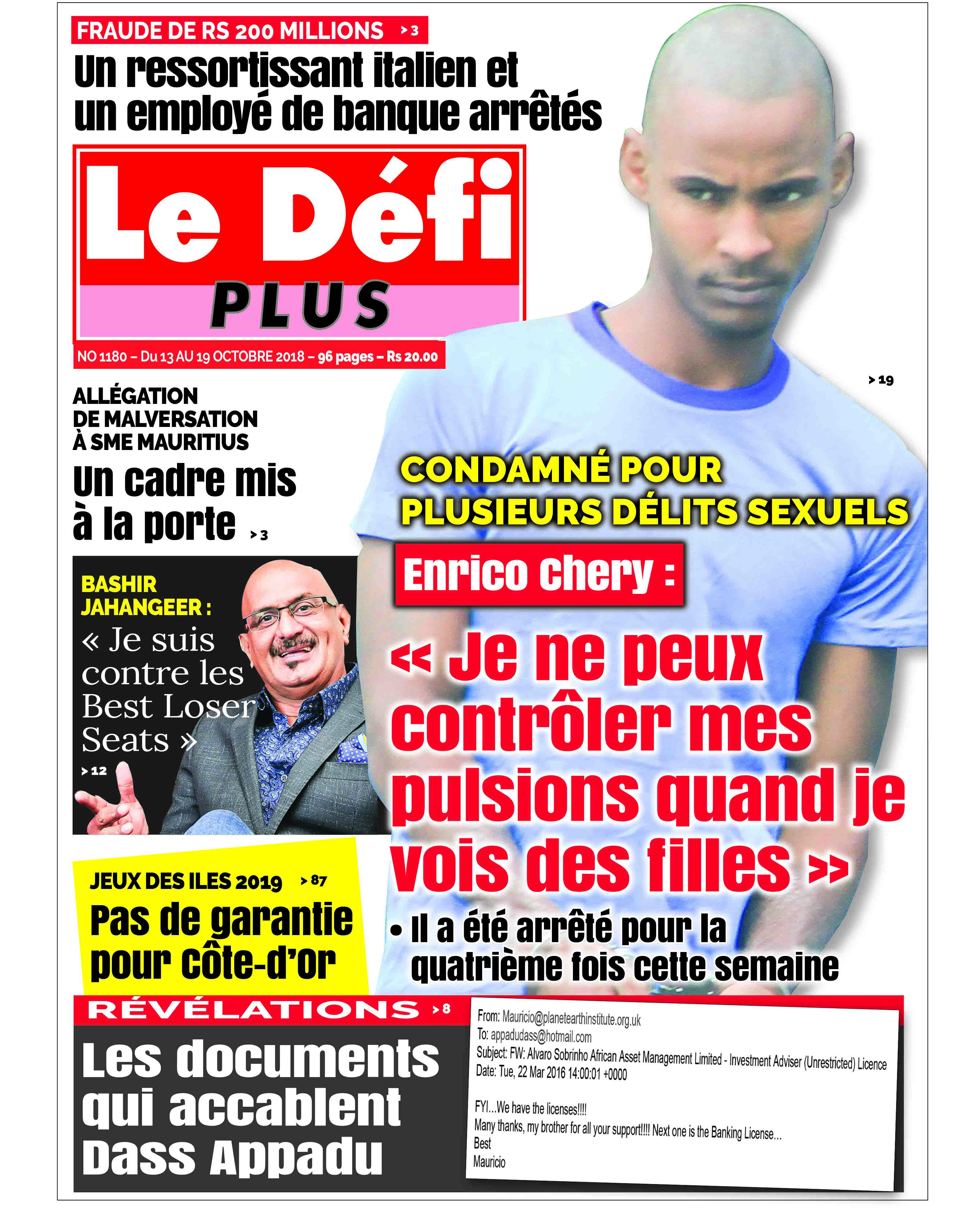 Avant même sa convocation devant la commission Caunhye, l’ancien secrétaire à la présidence, Dass Appadu, se retrouve dans de beaux draps. Ses correspondances à l’époque où il était au Réduit sous les ordres d’Ameenah Gurib-Fakim, révélées par Radio Plus vendredi, indiquent qu’il servait en fait d’homme à tout faire à l’Angolais Alvaro Sobrinho. Un rôle qu’il continuera même à jouer après avoir quitté le Réduit.