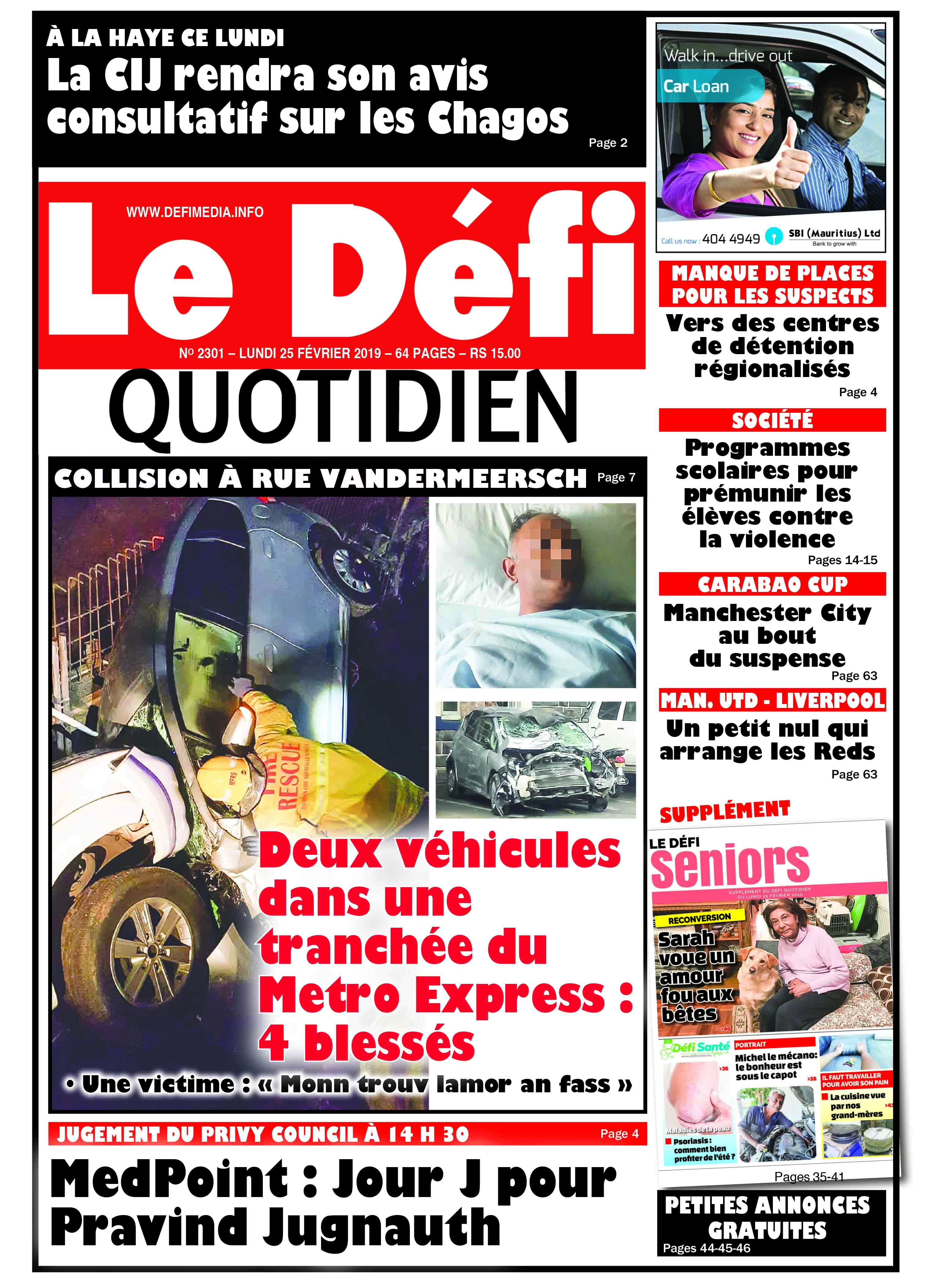 Quatre blessés dans un accident spectaculaire survenu aux petites heures du dimanche 24 février 2019, à rue Vandermeersch, Rose-Hill. Un 4x4 et une voiture qui y sont entrés en collision ont atterri dans une tranchée de plusieurs mètres de profondeur. Ce trou a été creusé pour aménager les fondations du Metro Express.