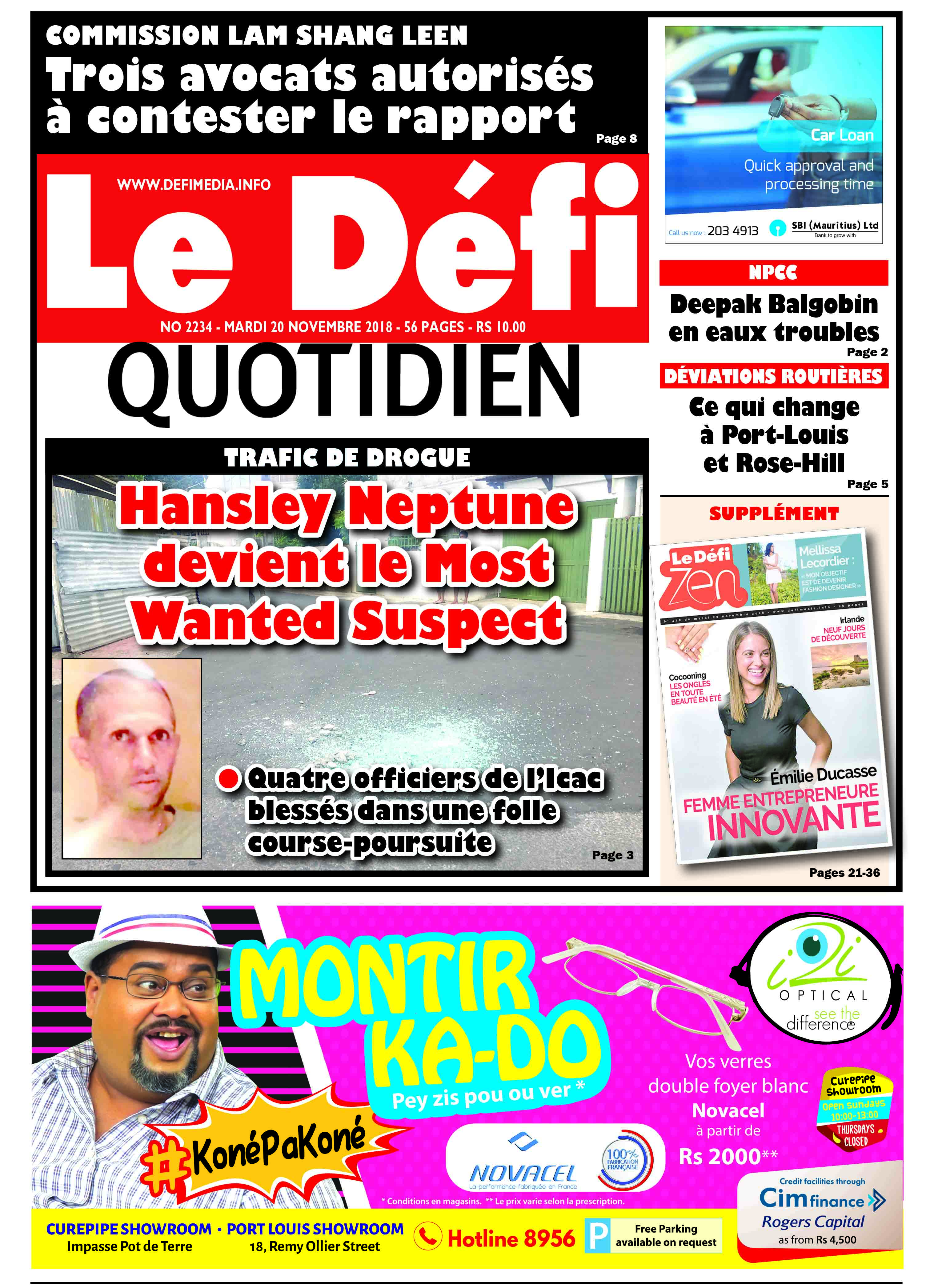 La scène était digne d’un film d’action. Une folle course-poursuite a eu lieu le lundi 19 novembre entre Floréal et Résidence Kennedy. L’hélicoptère de la police a même été mobilisé. Quatre officiers de l’Independent Commission against Corruption (Icac) engagés dans l’opération ont été blessés. Une motocyclette et une voiture ont été endommagées. Le fugitif, Hansley Neptune, a échappé à la police.