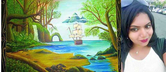 [[{"type":"media","view_mode":"media_large","fid":"8268","attributes":{"class":"media-image wp-image-16233 alignright","typeof":"foaf:Image","style":"","width":"445","height":"236","alt":"Tania"}}]]Tania Disha Ramchareetar: “I love mixing colours” 24-year old Tania works as a Senior Travel consultant and is a graduate in International Hotel & Tourism Management. “I have always had a huge Interest in Arts and I believe in serving planet earth to make our world a better place. I am really attracted to semi-abstract paintings and I include this genre in my paintings. I love gouache and oil paintings as I feel it gives character to my work. Painting is a graceful way of expressing oneself freely, be it a dream, anger, happiness or love. I love mixing colours and have nice shades,” she highlights. Tania derives her inspiration from her thoughts. “I like to dream, especially when I’m in nature, I have a deep bond with nature and cold climates, I have lots of ideas and find my solutions when I’m in the shower. Women also inspire me because I feel we are a beautiful creation of God. I like to scribble a lot whenever there is paper and pen in front of me. Otherwise, whenever I am on holidays, I paint or even if I need to paint walls or do anything creative, I never stop myself from doing it,” she adds. Favourite painter: Francisco Goya and Charmaine Olivia.