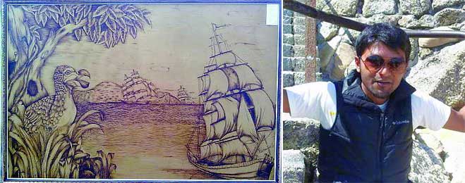 [[{"type":"media","view_mode":"media_large","fid":"8267","attributes":{"class":"media-image wp-image-16232 alignleft","typeof":"foaf:Image","style":"","width":"531","height":"209","alt":"shakeel1"}}]]Shakeel Ramruttun: “It all depends on my mood” 27-year old Shakeel, a resident of Malenga St-Pierre, is an industrial technician. Despite being in this field, he has a passion for arts, mainly pyrography which he has mastered to perfection. “I do Pyrography. It is the art of creating designs by burning wood. This can be practised on any type of wood or leather. I tried out different techniques like glass painting and ceramic, but pyrography interested me the most. I developed a passion for this art,” he reveals. Shakeel usually draws and paints depending on his mood. “I do not really look for inspiration. It all depends on my mood,” he adds. Working five days a week does not really create the opportunity to do pyrography. However, since it is a passion, he does allocate time for it in his leisure time when he tries to relax either during the afternoon or weekends. Shakeel has not been exposed to many pyrographers and he has learnt everything from scratch and explored this art on his own.
